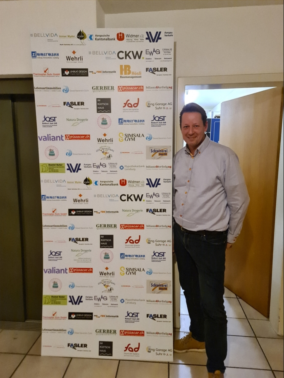 Die 2.4m hohen und 1m breite Wände präsentieren alle Logos der Mitglieder des GV Suhr. Wir sind Stolz diese unseren Mitgliedern zu präsentieren. Diese Wände sollen bei allen GV Anlässen aufgestellt werden um das Gewerbe den Bewohner von Suhr zu präsentieren.